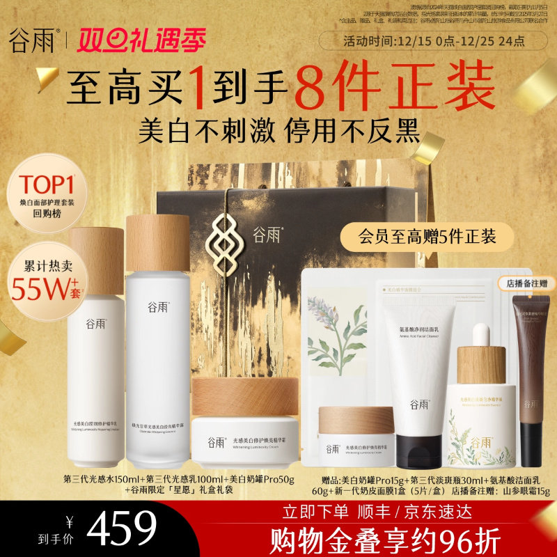 【圣诞礼物】谷雨第三代光感水乳套装美白淡斑修护提亮护肤品正品