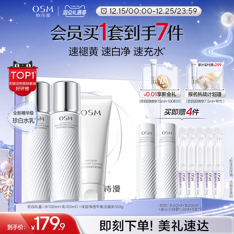 OSM欧诗漫珍珠白臻白净透礼盒美白淡斑套装补水保湿四件套正品女
