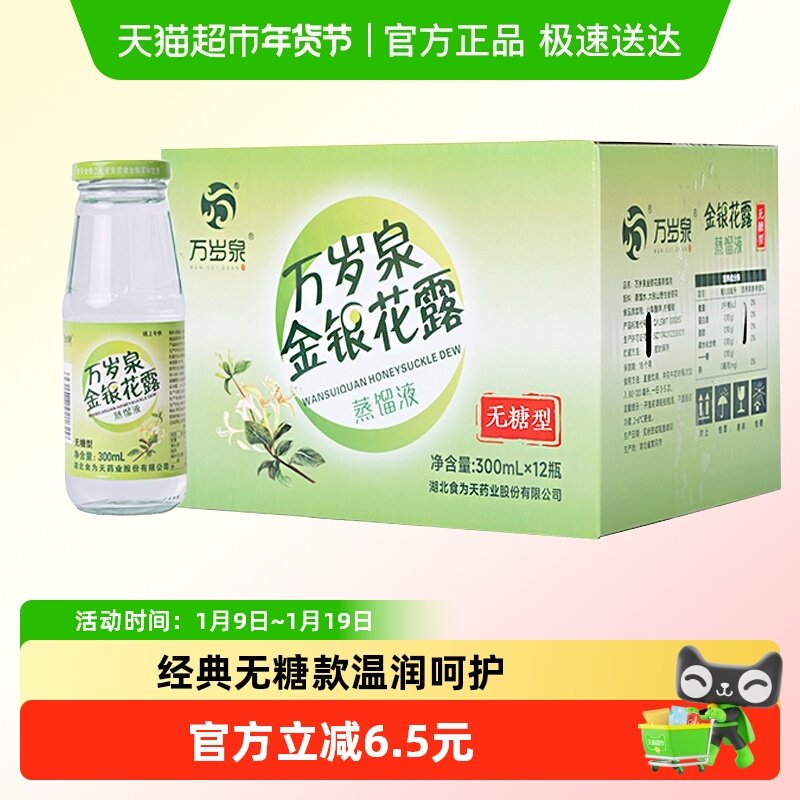 食为天无糖金银花露蒸馏液300ml*12瓶无糖植物茶饮料清清宝整箱
