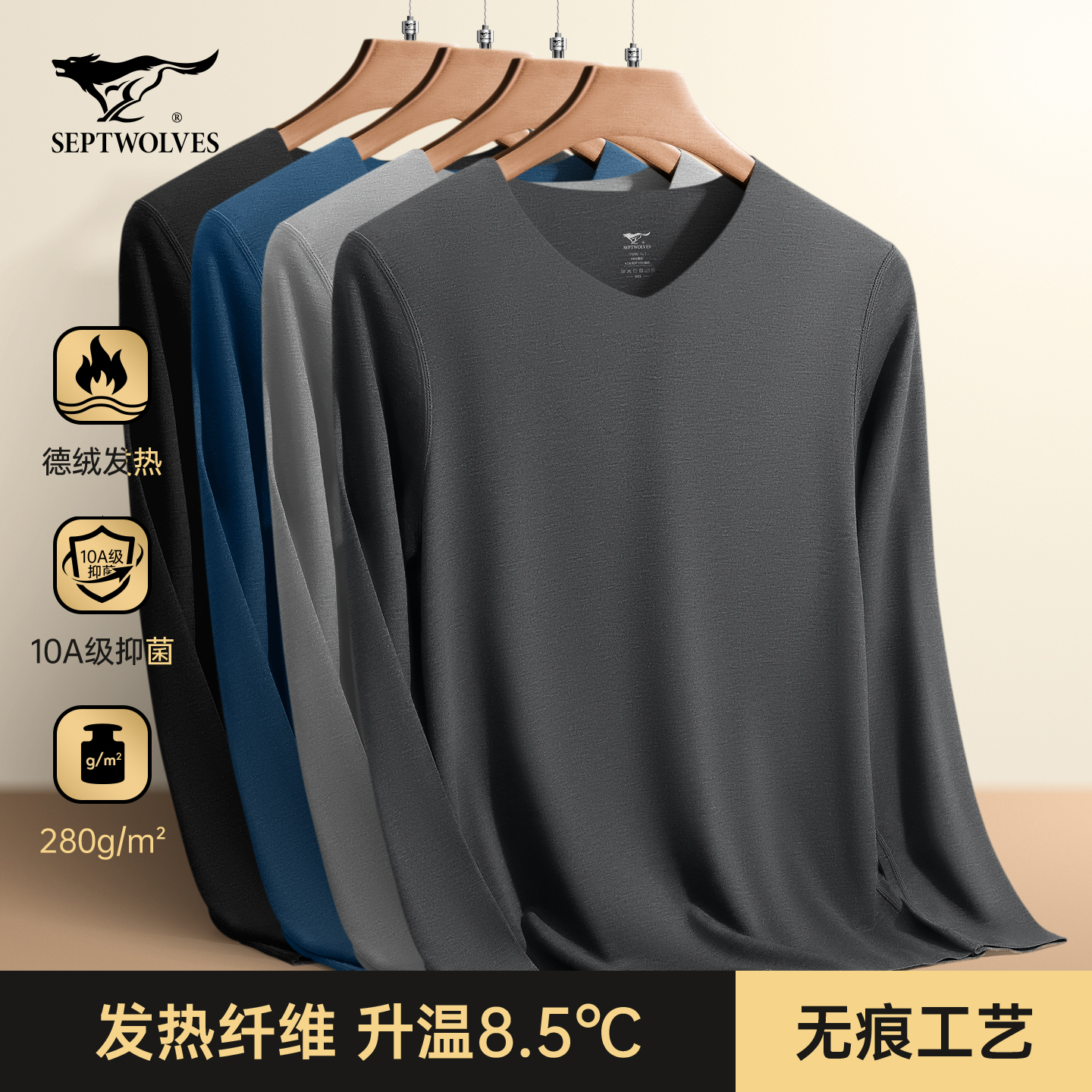 七匹狼德绒保暖内衣男士秋衣单件上衣发热无痕冬季男款恒温打底衫