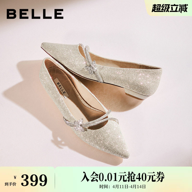 百丽平底浅口金色单鞋女26春季新款年会不累脚秀禾婚鞋子B2989A