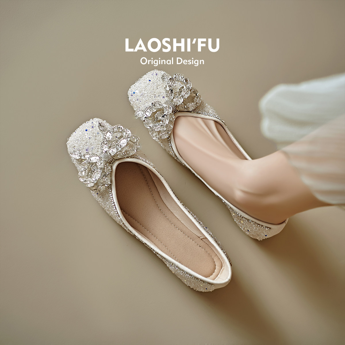 saturdaymode仙女浅口单鞋女款2026春季新款闪钻平底婚鞋芭蕾舞鞋