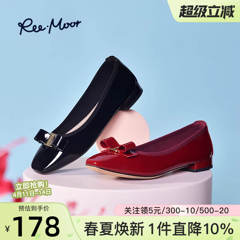 REEMOOR睿慕小红鞋浅口软底蛋卷鞋平底鞋单鞋瓢鞋婚鞋芭蕾鞋女