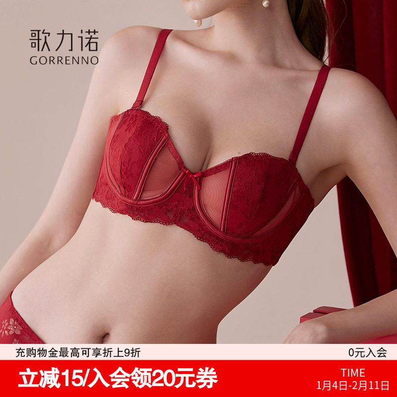 维多利亚性感蕾丝内衣新娘超薄款文胸套装本命年红色聚拢女士胸罩