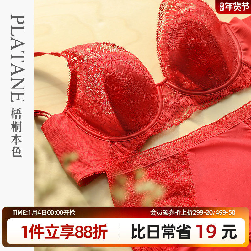 Kbra本命年法式蕾丝性感红色内衣女结婚聚拢防下垂超薄文胸套装