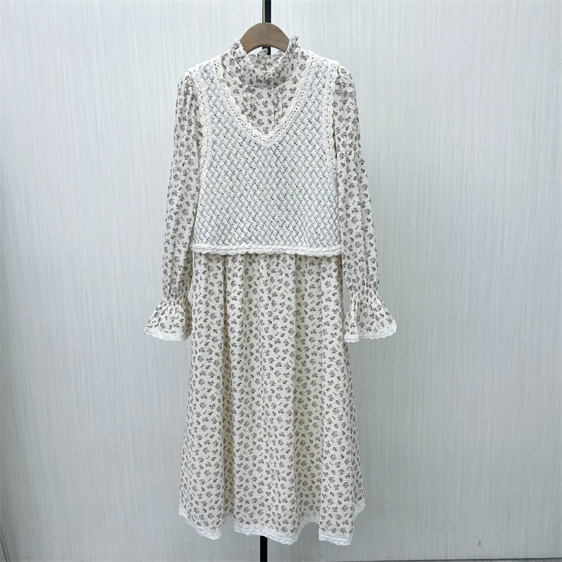 C●2025春季新品 假两件拼接连衣裙女复古小众森系棉布长裙7309