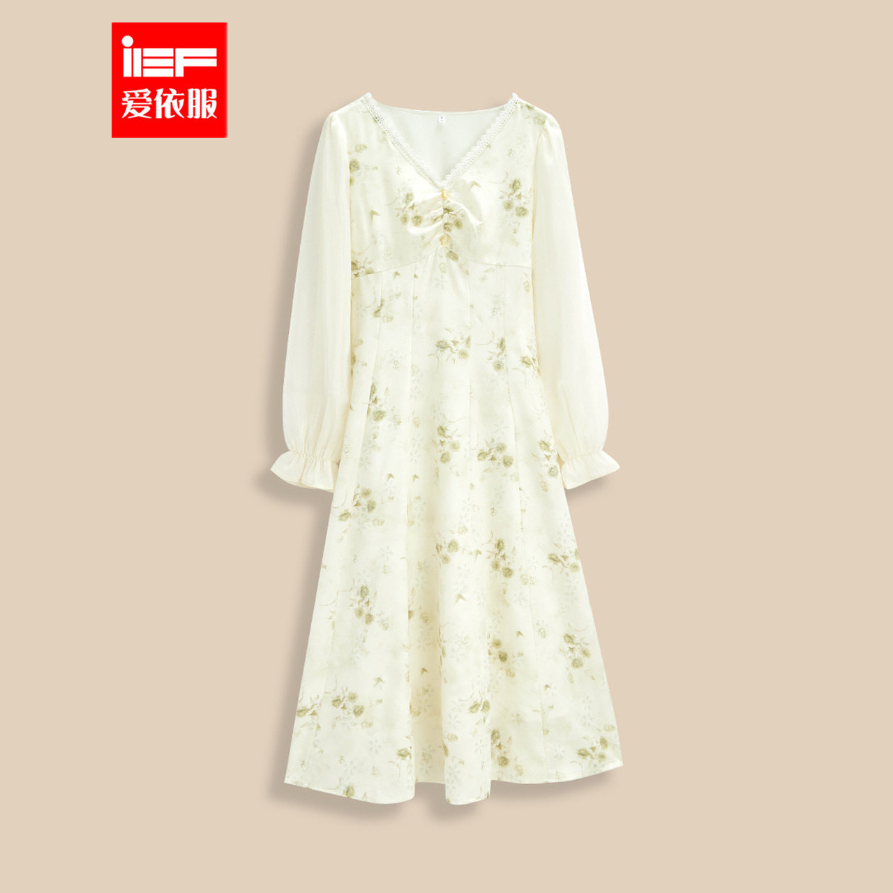 IEF/爱依服连衣裙2025春季新款法式成熟风气质感花色通勤连衣长裙