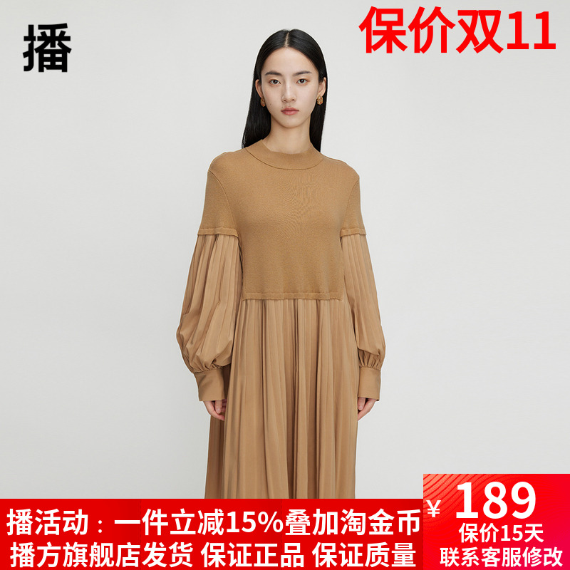 播咖色针织连衣裙女商场同款2023春季新款小众拼接裙子BDQ3LD0409