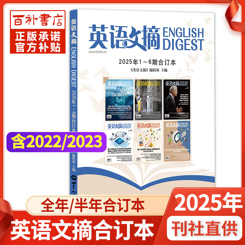 英语文摘合订本杂志2025年1-6月上半年/2023年1-6月/1-12月中英刊双语阅读学习期刊中考高考四六级雅思托福大学考研书籍非2022过刊