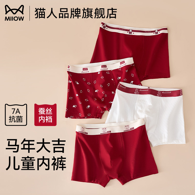猫人本命年男士内裤红色2026马年短裤男款纯棉平角四角裤结婚礼物