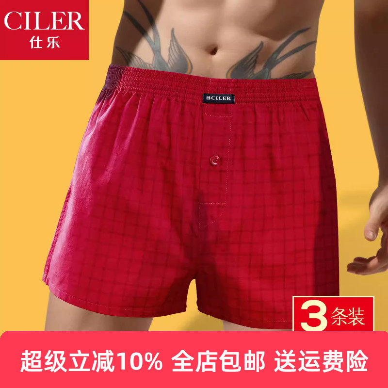 3条仕乐纯棉男士内裤平角裤宽松阿罗裤大红色本命年大码四角马年
