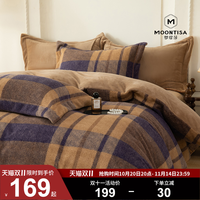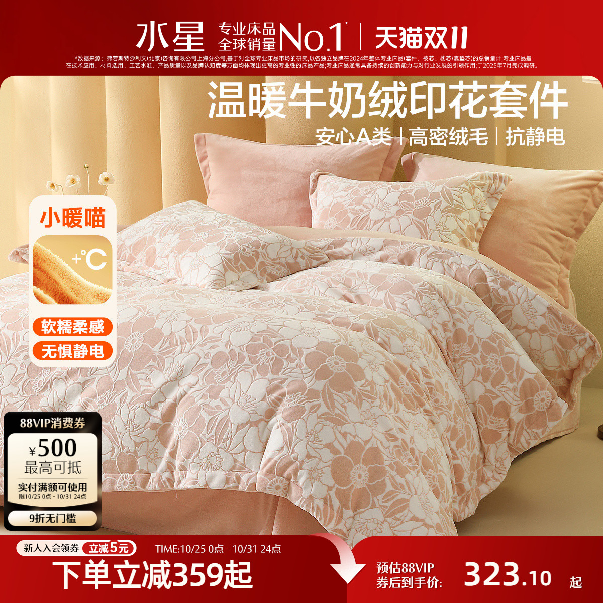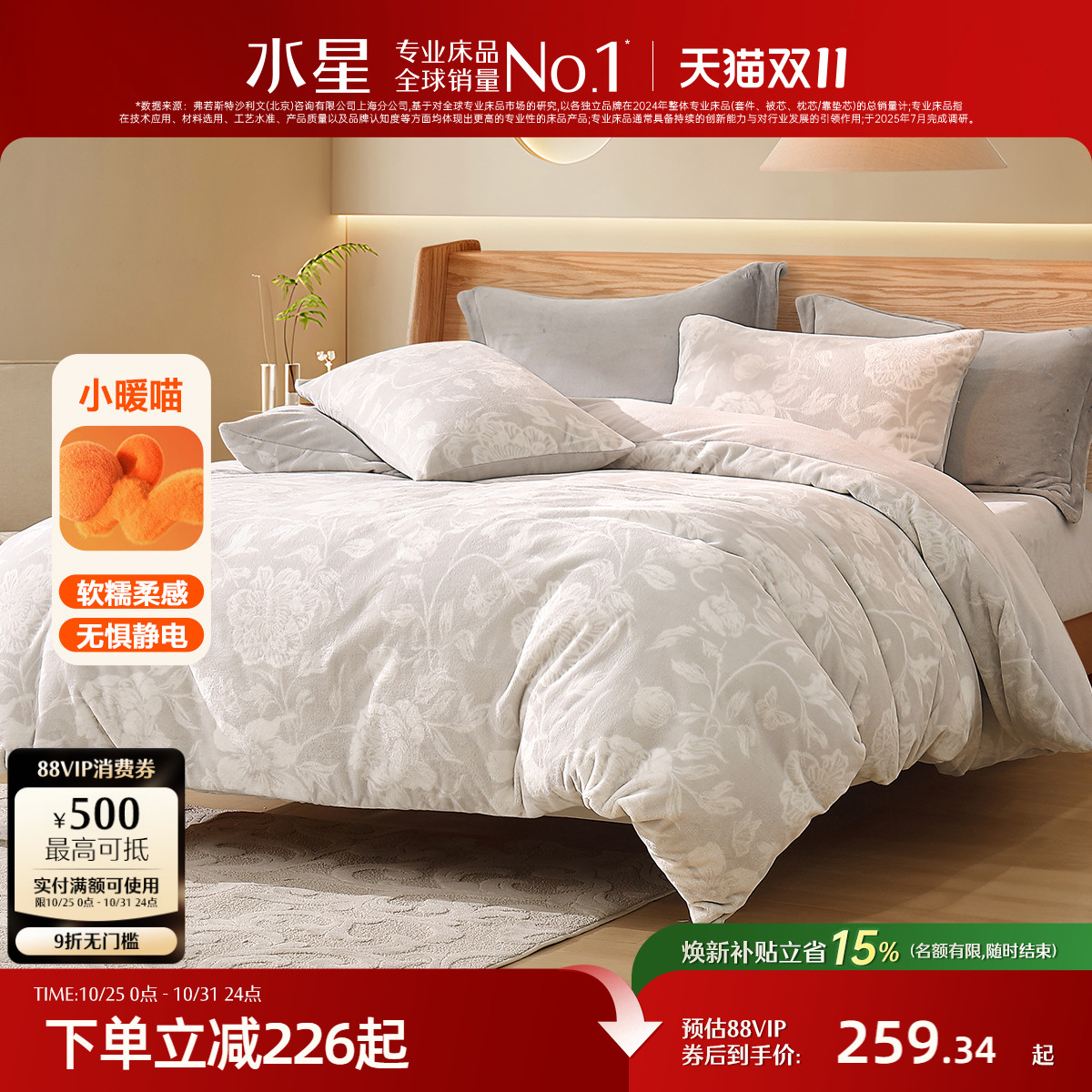 水星家纺新品牛奶绒四件套加厚保暖床单被套床笠款秋冬季床上用品