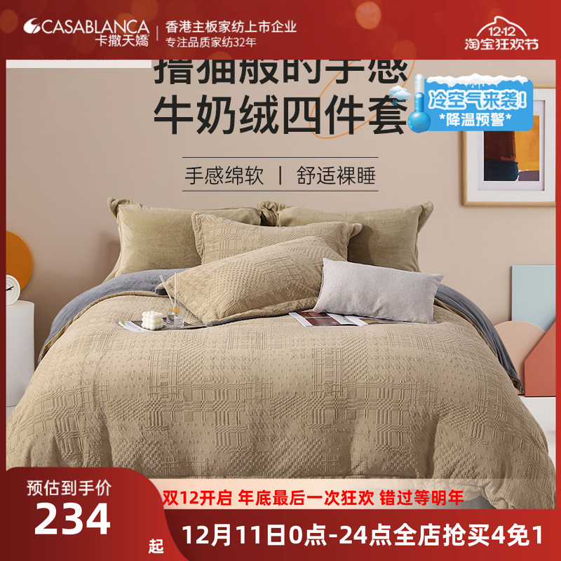 水星家纺牛奶绒四件套加厚暖绒抗静电套件床单被套秋冬床品25新品