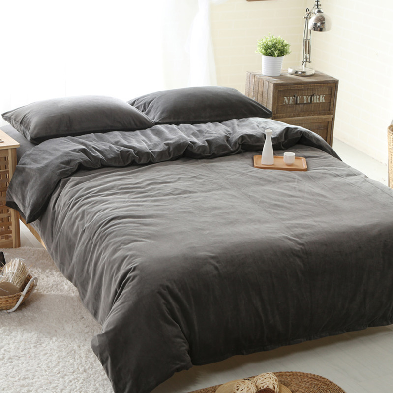 日式无印天鹅绒四件套加厚保暖简约良品纯色珊瑚绒法莱绒素色床品