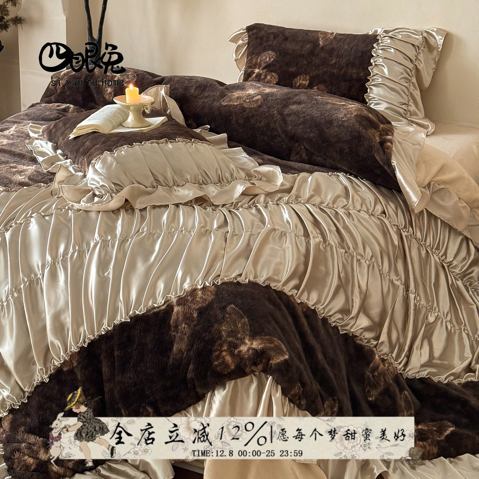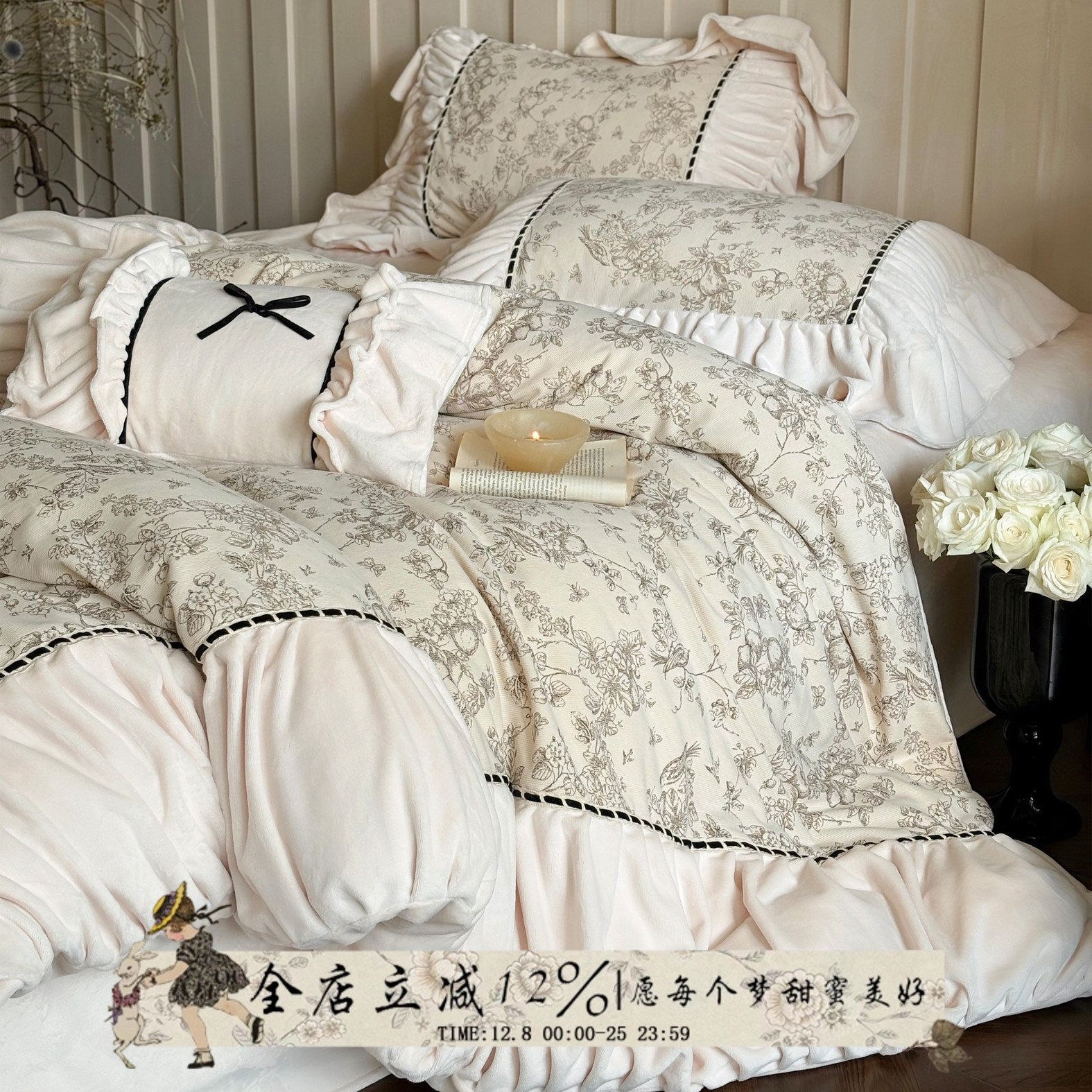 米兰映像︱法式复古小众冬季仿兔绒四件套加厚保暖牛奶绒被套床品