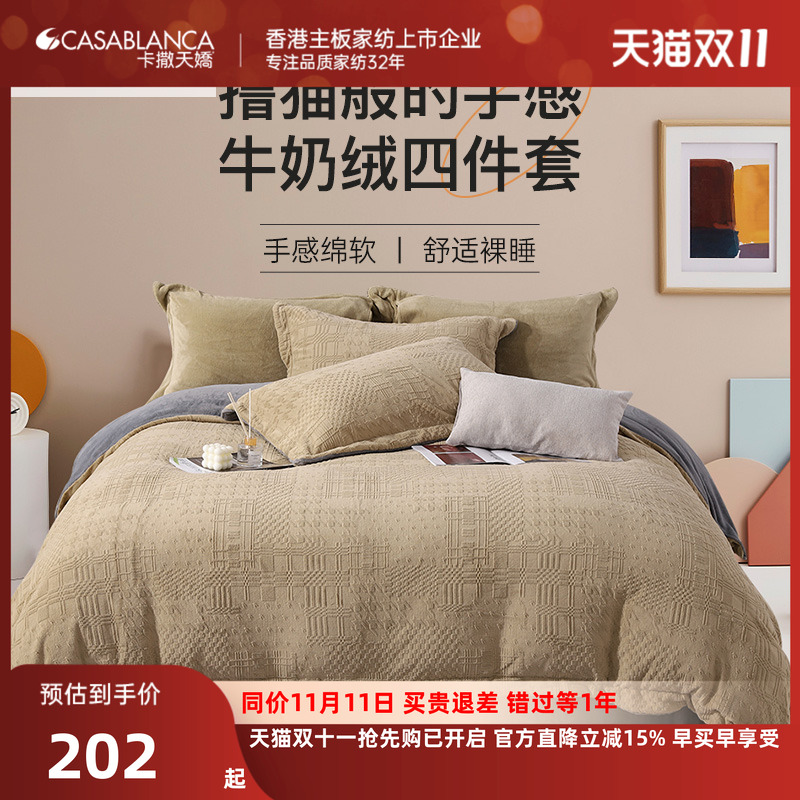 卡撒天娇牛奶绒四件套加厚保暖床单被套法兰绒绒双面加厚蓄热保暖
