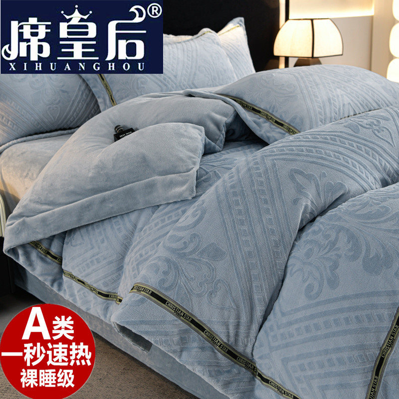 轻奢A类婴儿级牛奶绒四件套加厚被套加绒床上珊瑚法兰绒床笠冬季