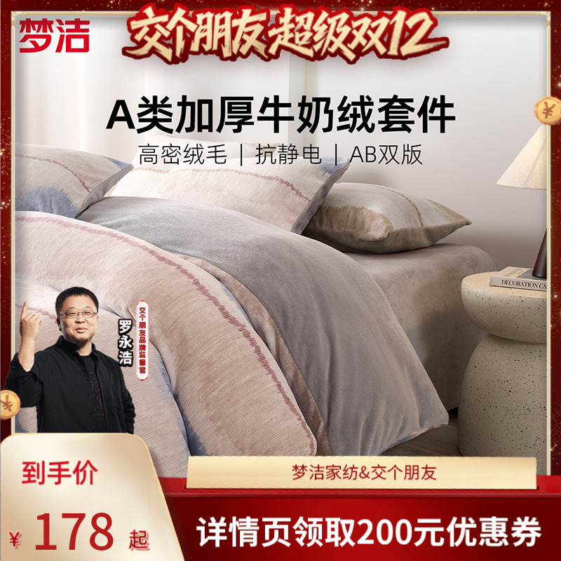 【交个朋友双12现货补贴】梦洁仿牛奶绒四件套加厚保暖床单被套