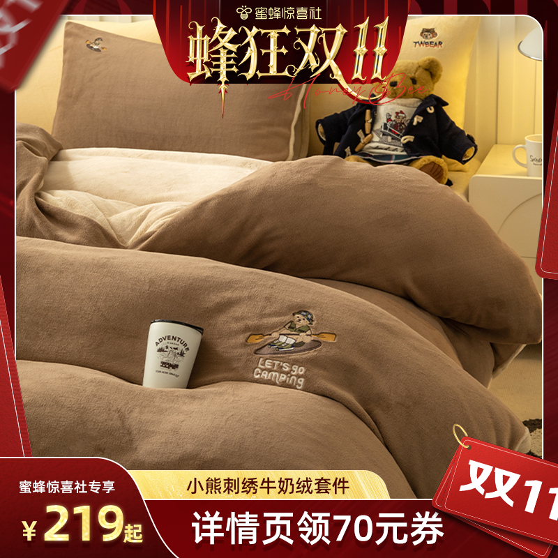 【蜂狂双11】TeenieWeenie小熊刺绣美拉德风牛奶绒四件套加厚