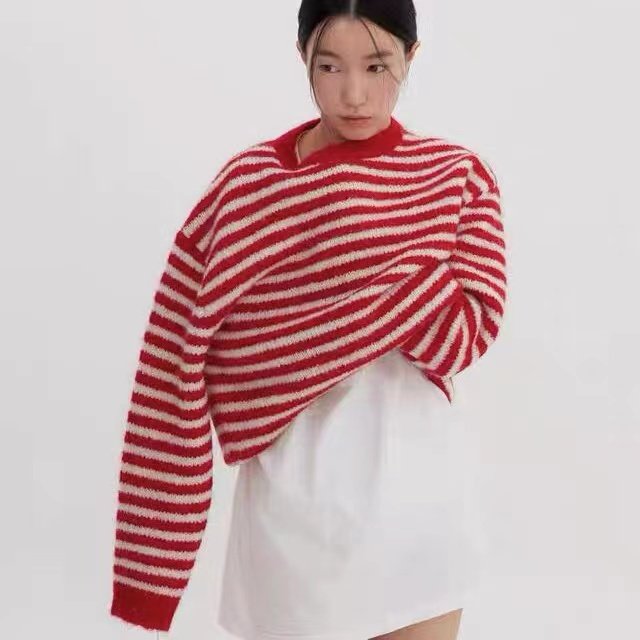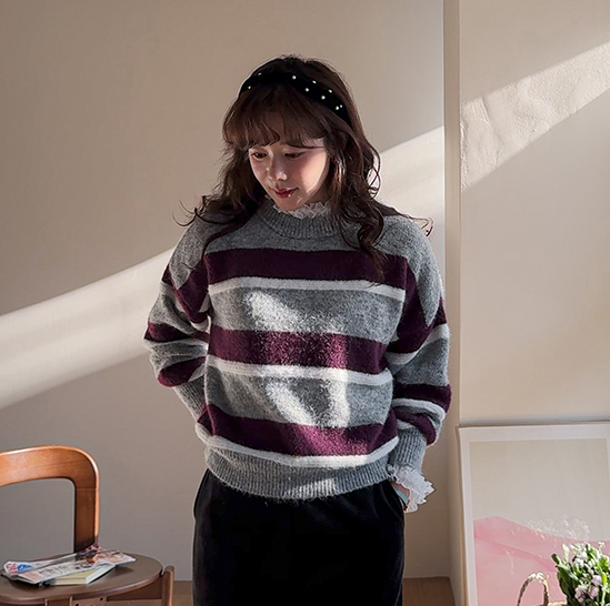 - 高领条纹毛衣女