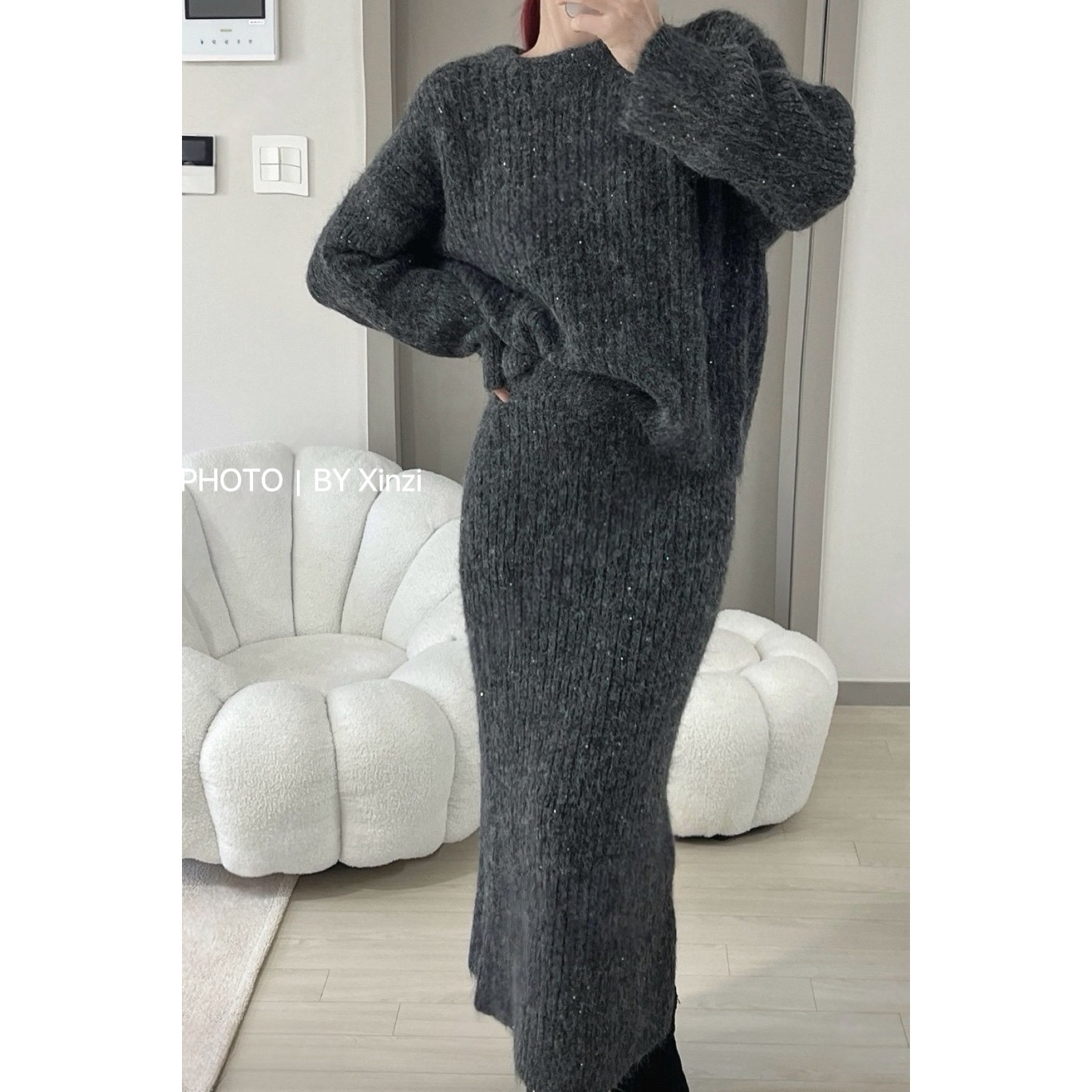 - 超长款针织开衫