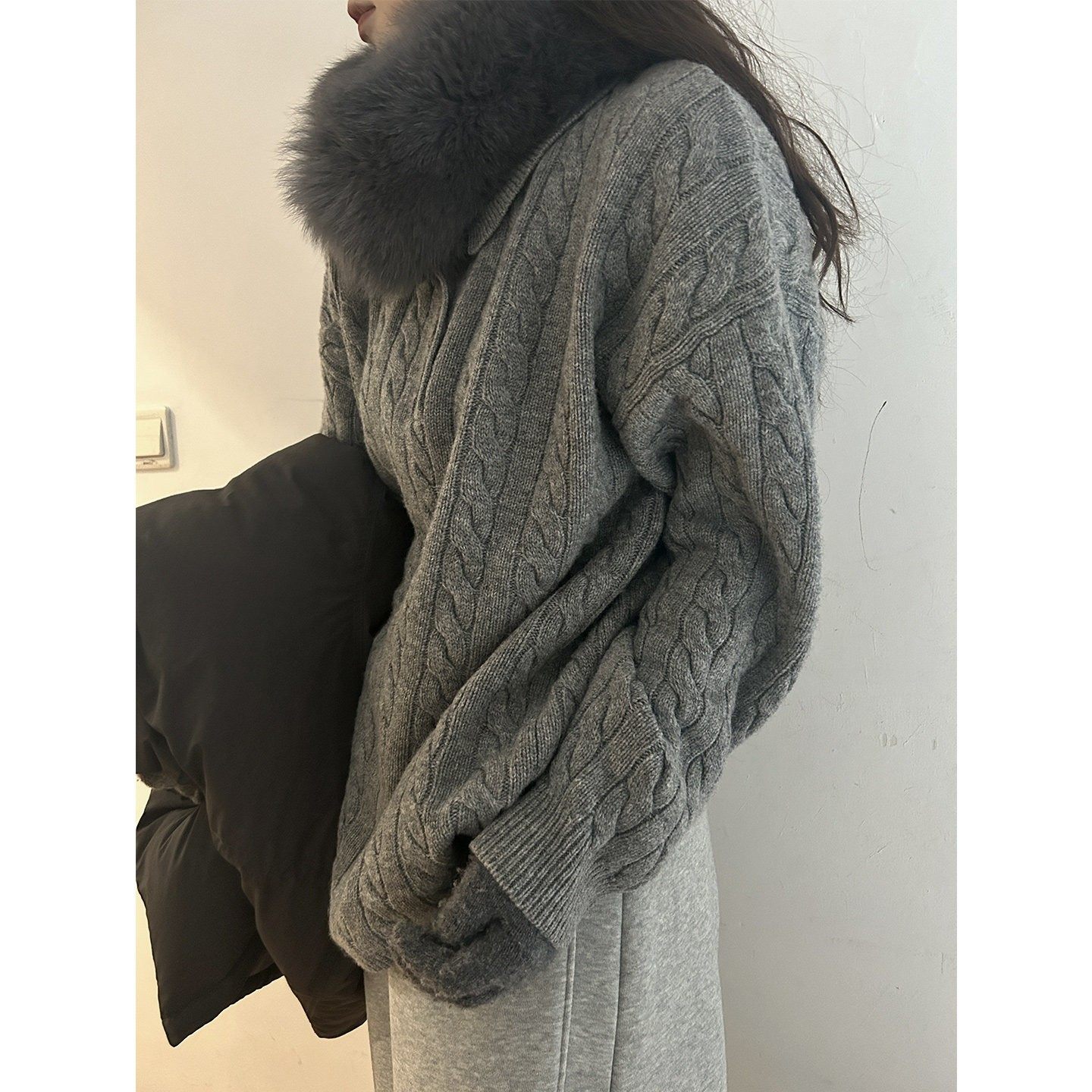 - 女士开衫毛衣灰色