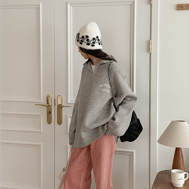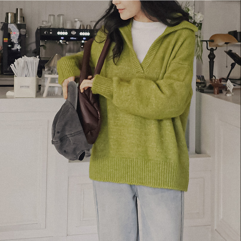 - 翻领针织衫女套头长袖