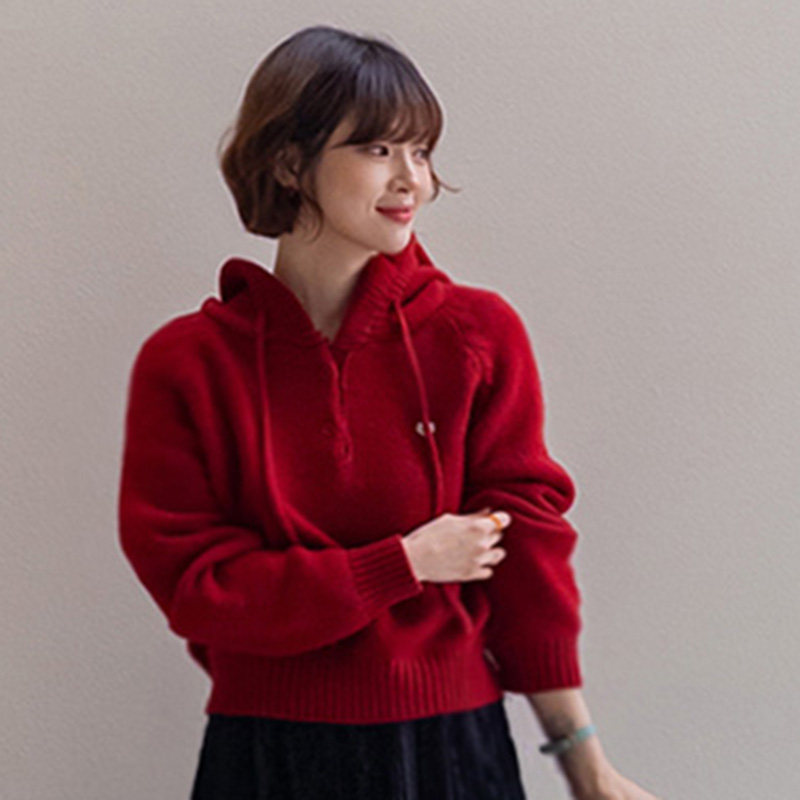 - 连帽套头毛衣女