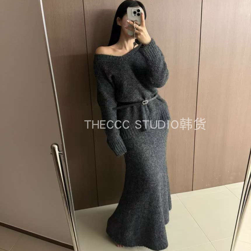 - 针织衫 露锁骨