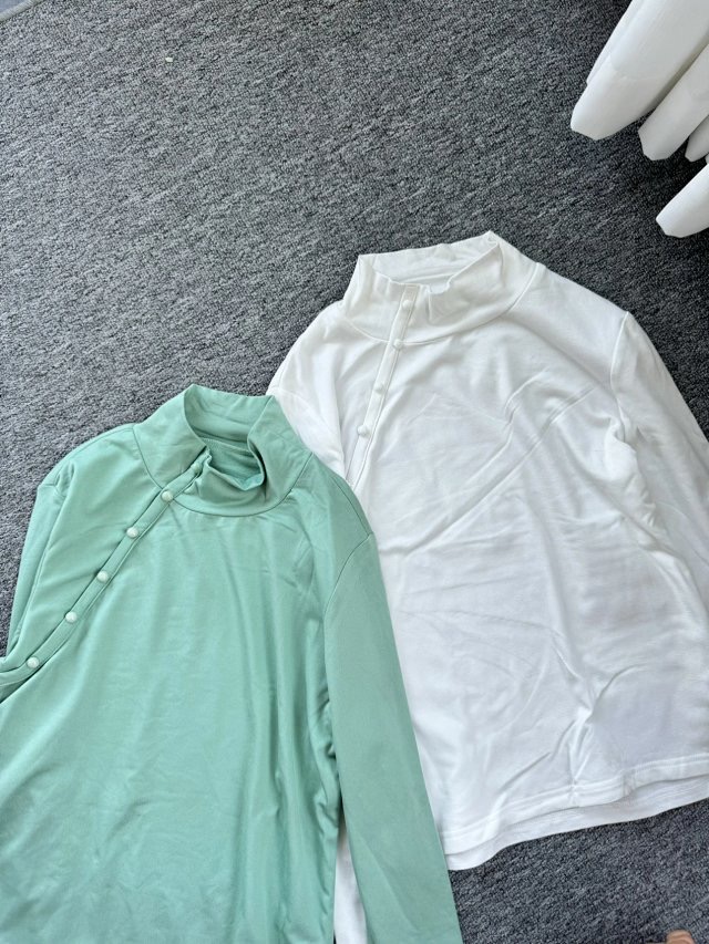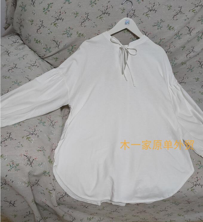包邮 薄绒春秋款长袖T恤女装白色长袖衬衫简约修身复古国风女上衣