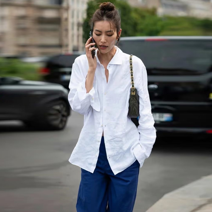 刘雯方圆同款宽松白色棉麻衬衫女薄款长袖外套新款春秋季上衣包邮
