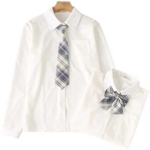 包邮福利!衬衫送领结或领带 白色蓝色男女长袖班校园工作合唱服