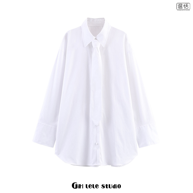 【包邮】2025秋季新款白色翻领长袖衬衫女宽松百搭领带饰上衣