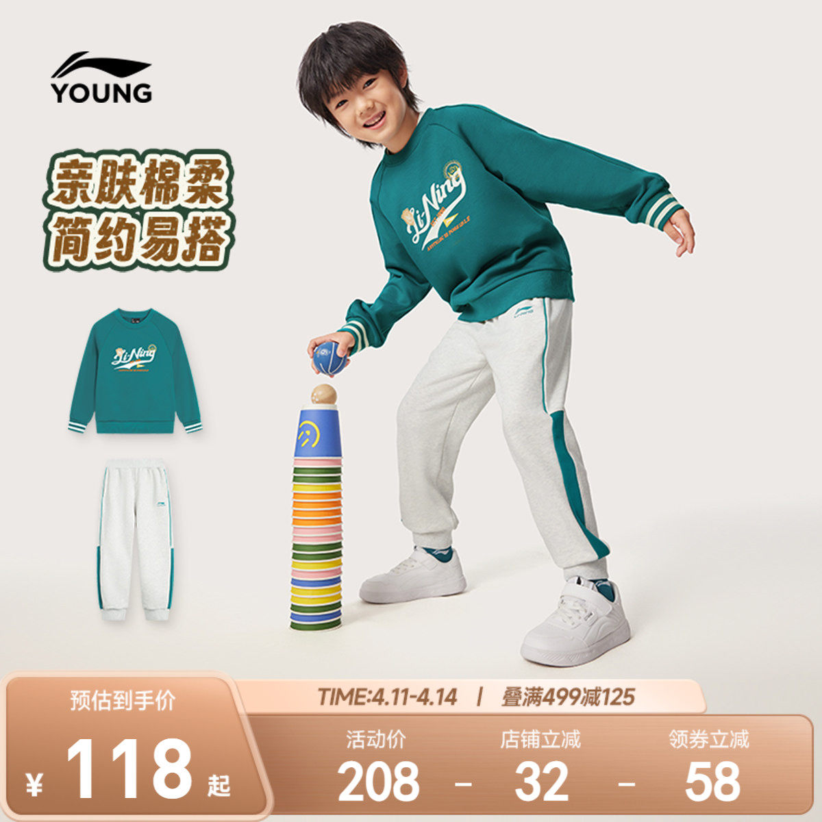 2件套|李宁小童套装卫衣裤子2026新款运动春装男童装女孩宝宝上衣