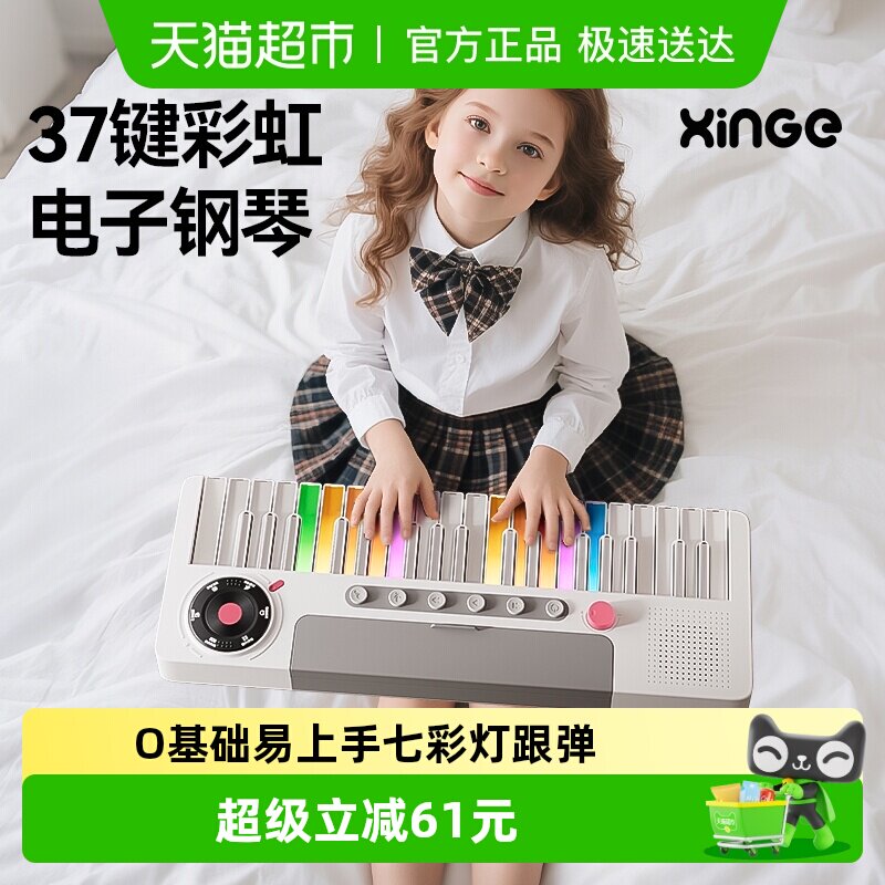 欣格儿童电子钢琴早教音乐初学37键彩虹电子琴乐器玩具3到6岁礼物