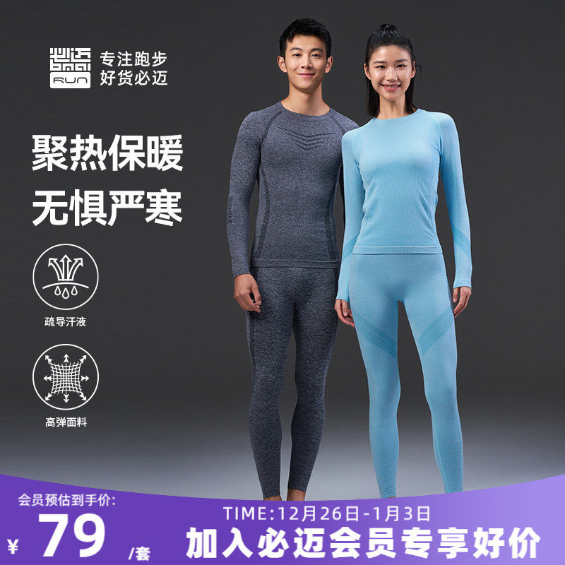 必迈跑步运动蓄能暖绒套装加绒保暖排汗抑菌秋冬男女外穿衣打底套