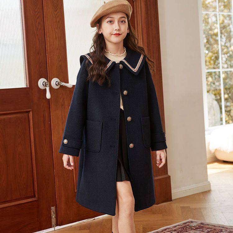 女童秋冬羊绒呢大衣儿童春秋韩版洋气中长款女孩中大童宝宝呢外套
