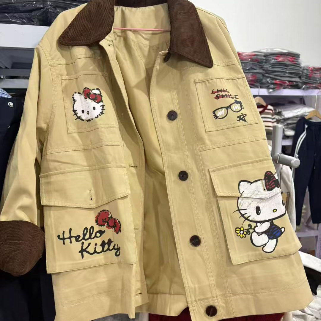 女童卡通风衣外套2026春季新款大童韩版时髦洋气KT猫百搭大衣上衣