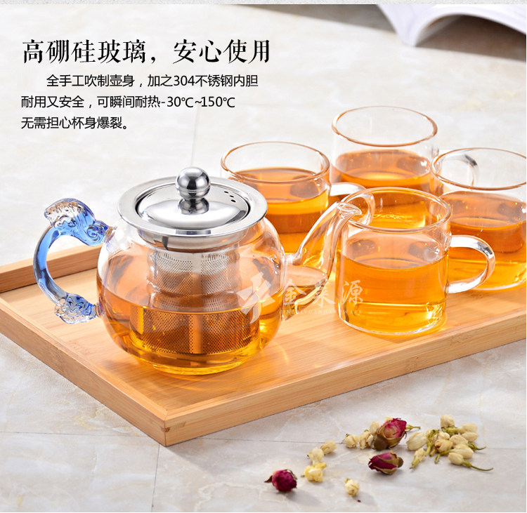 加厚玻璃茶具花茶壶套装整套耐热不锈钢过滤红茶功夫煮泡茶器家用