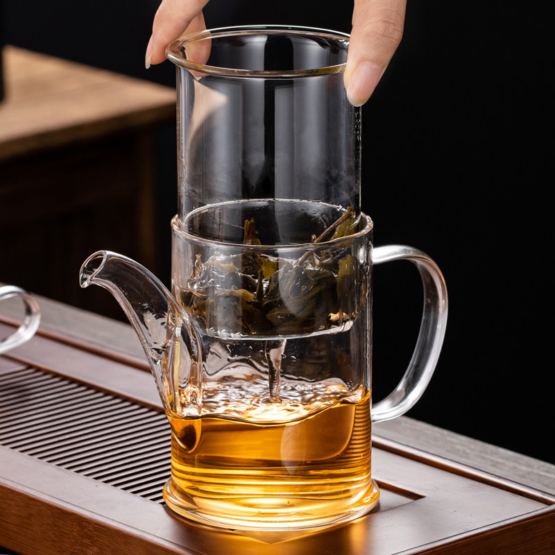 加厚耐高温全玻璃冲泡茶壶花茶绿茶红茶杯茶水分离公道杯带过滤网