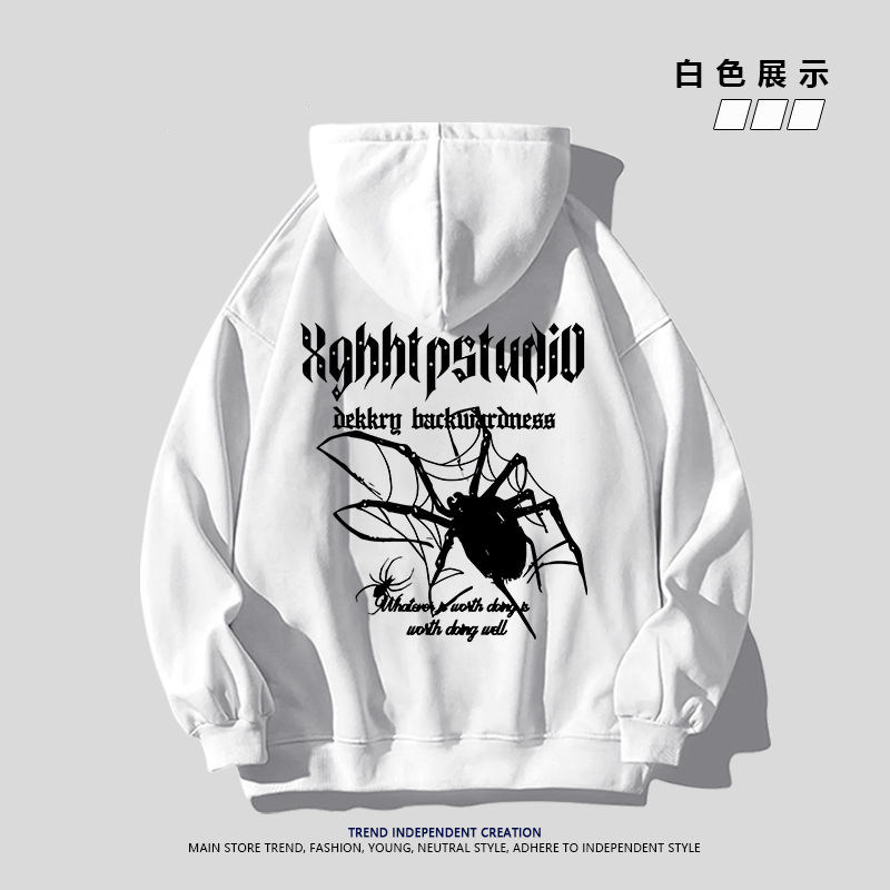 银狐绒美式潮牌蜘蛛印花连帽卫衣男女秋冬宽松百搭ins原宿风外套