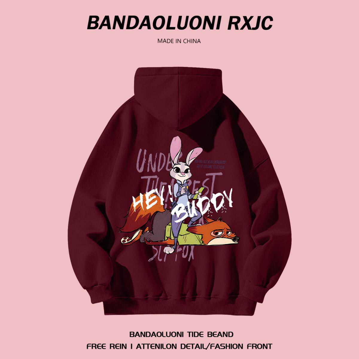 银狐绒美式高街潮牌朱迪印花连帽卫衣男女秋冬宽松ins原宿风外套