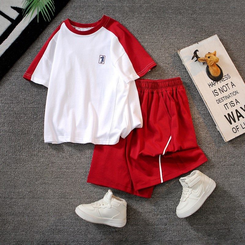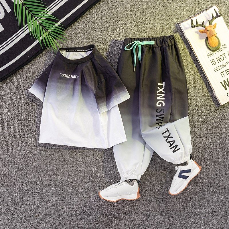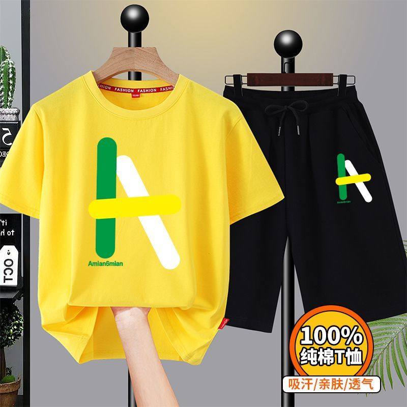 大牌折扣童装男装套装2026新儿童男运动短袖两件套中大童衣服潮字