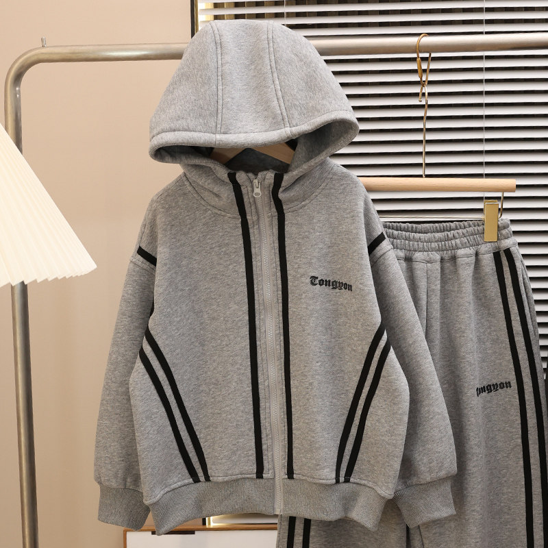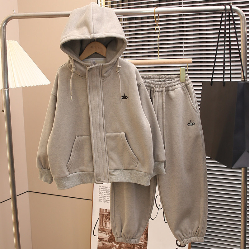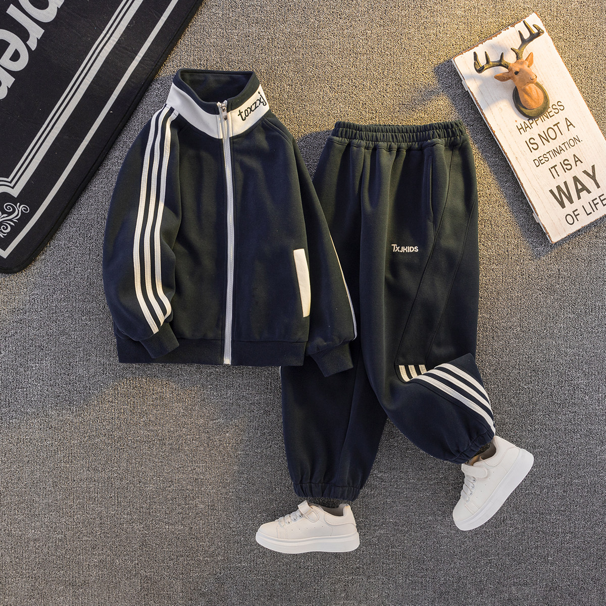 男童加绒套装2025新款大童男装秋冬装儿童装加厚洋气运动男孩冬季