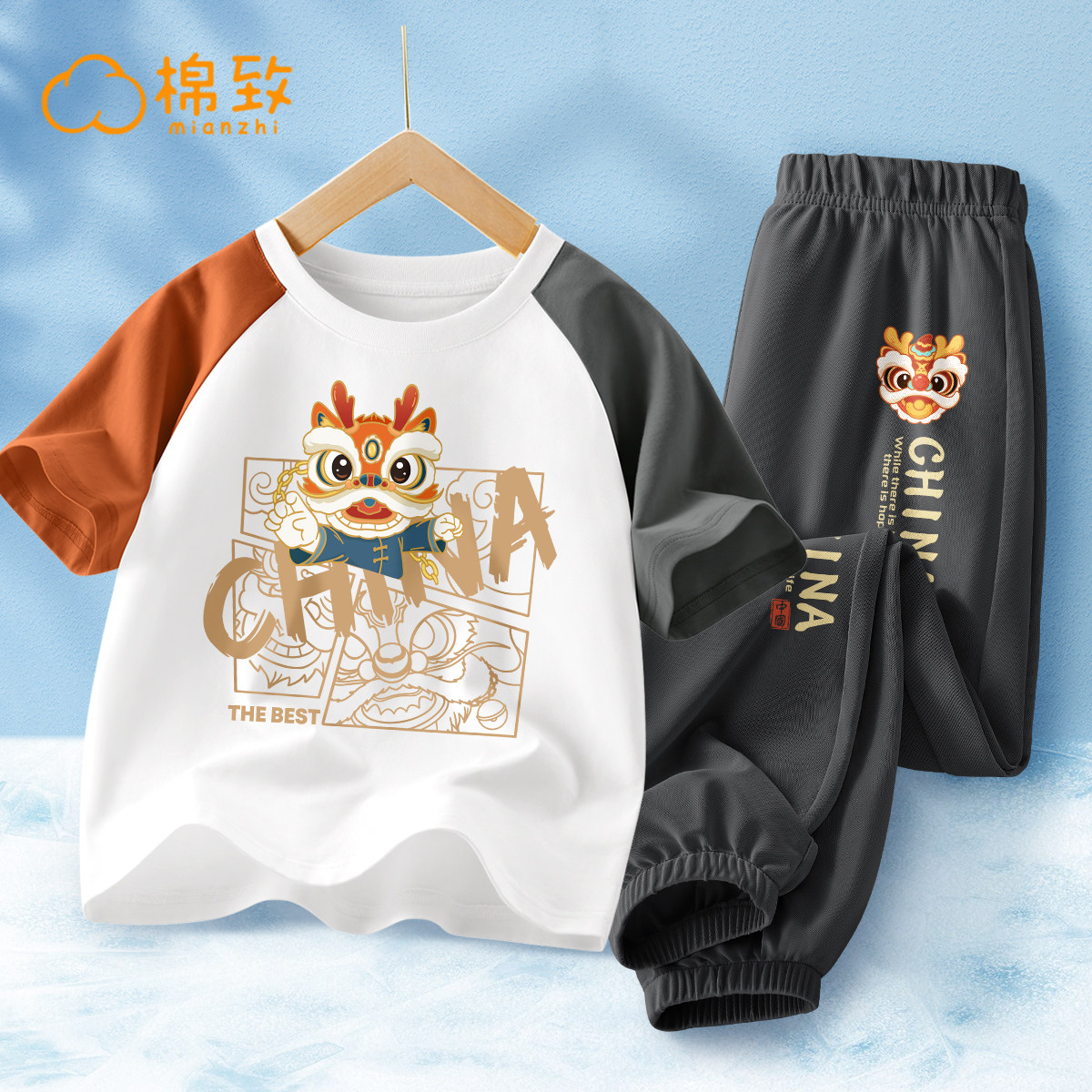 棉致男童夏装2024新款短袖防蚊裤时髦洋气大童男装童装潮儿童套装