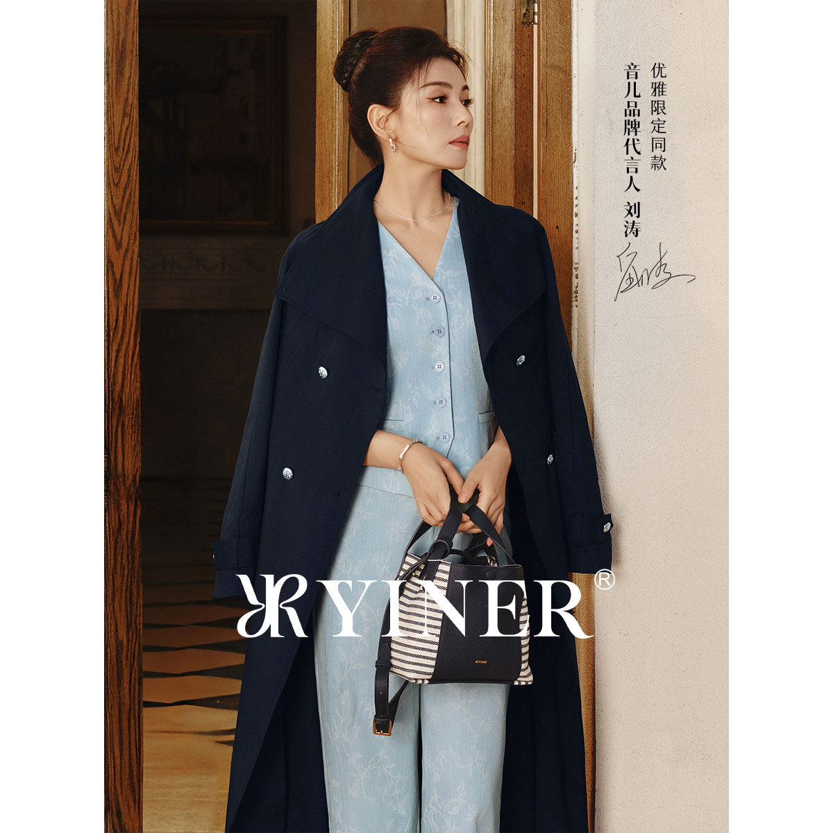 【刘涛同款】YINER音儿2026春季新款时尚大翻领廓形收腰风衣外套