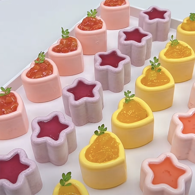 6连星星爱心凹槽月饼马蹄糕蛋糕覆盆子慕斯模具硅胶模花形果冻模
