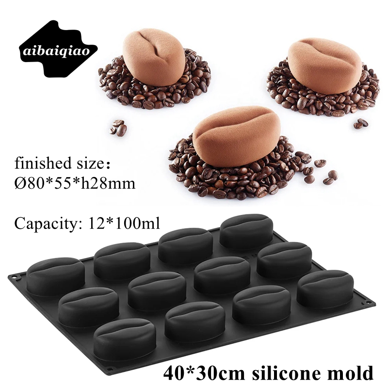 爱百巧 12连咖啡豆慕斯模具6连法式甜品蛋糕硅胶模具茶歇烘焙模具