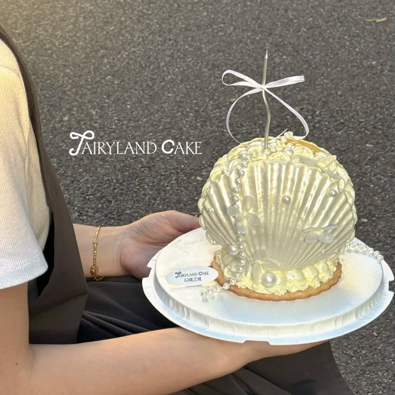网红同款珍珠梦幻贝壳蛋糕装饰慕斯模具唯美女神生日烘焙装扮插件