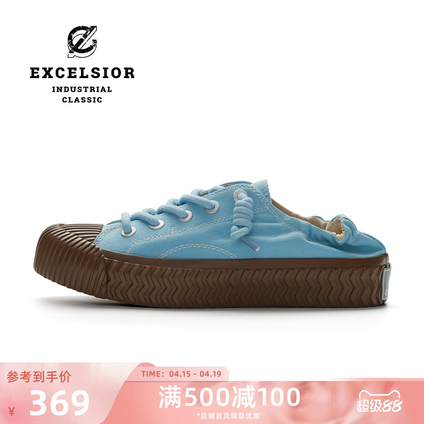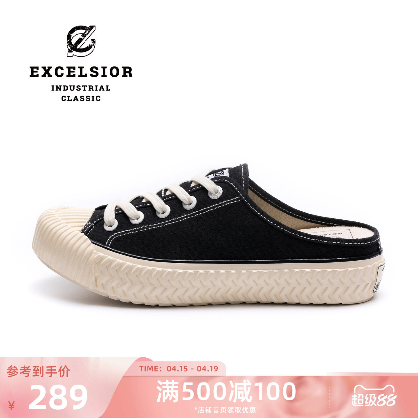 excelsior饼干鞋官方 一脚蹬懒人鞋增高厚底穆勒鞋半拖帆布鞋女